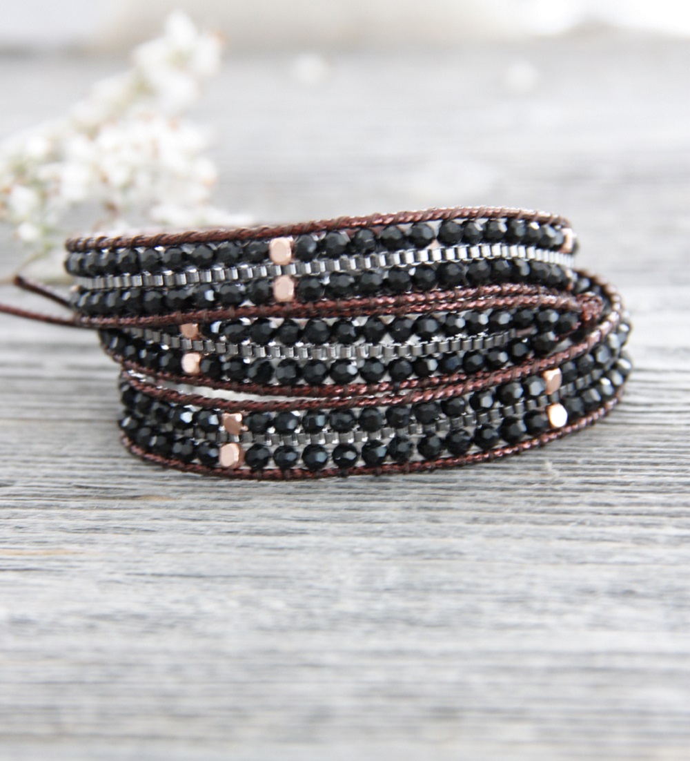 Nakamol Steinarmband mit Lederband welches individuel am Handgelenk angepasst werden kann. Alles Handarbeit